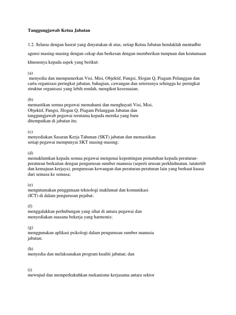 Tanggungjawab Ketua Jabatan