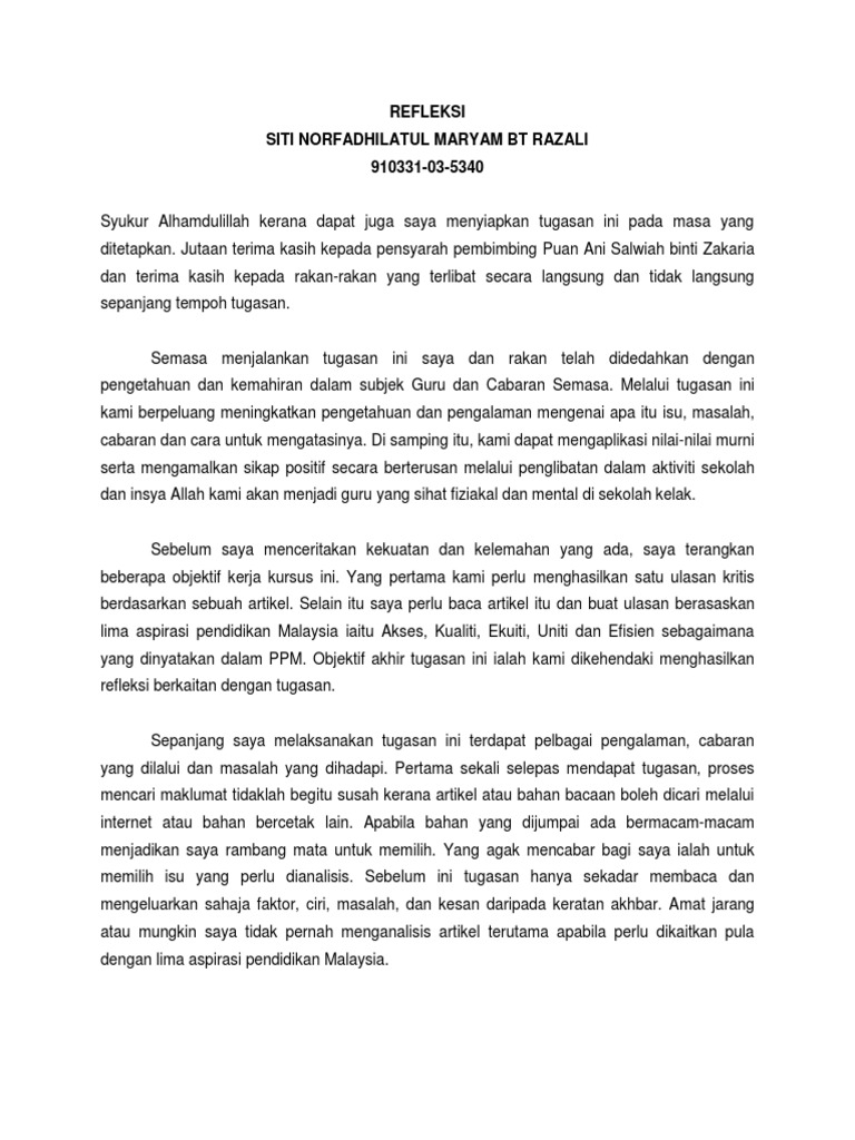Refleksi Individu Program Bina Insan Guru Bagi Kursus Ijazah Sarjana Muda Perguruan Ambilan 2012 Semester 1 Ame Din Academia Edu