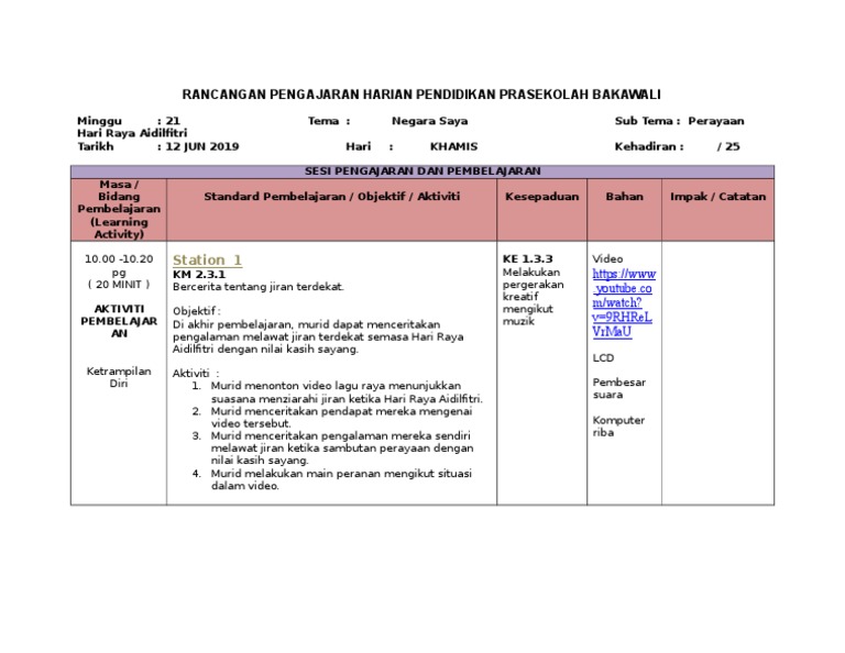 Rph Pra M7 Sekolah Saya Docx Rancangan Pelajaran Harian Pendidikan Prasekolah Nama Guru Nur Ashikin Binti Ab Jalil Minggu Ke 7 Masa Tunjang Course Hero