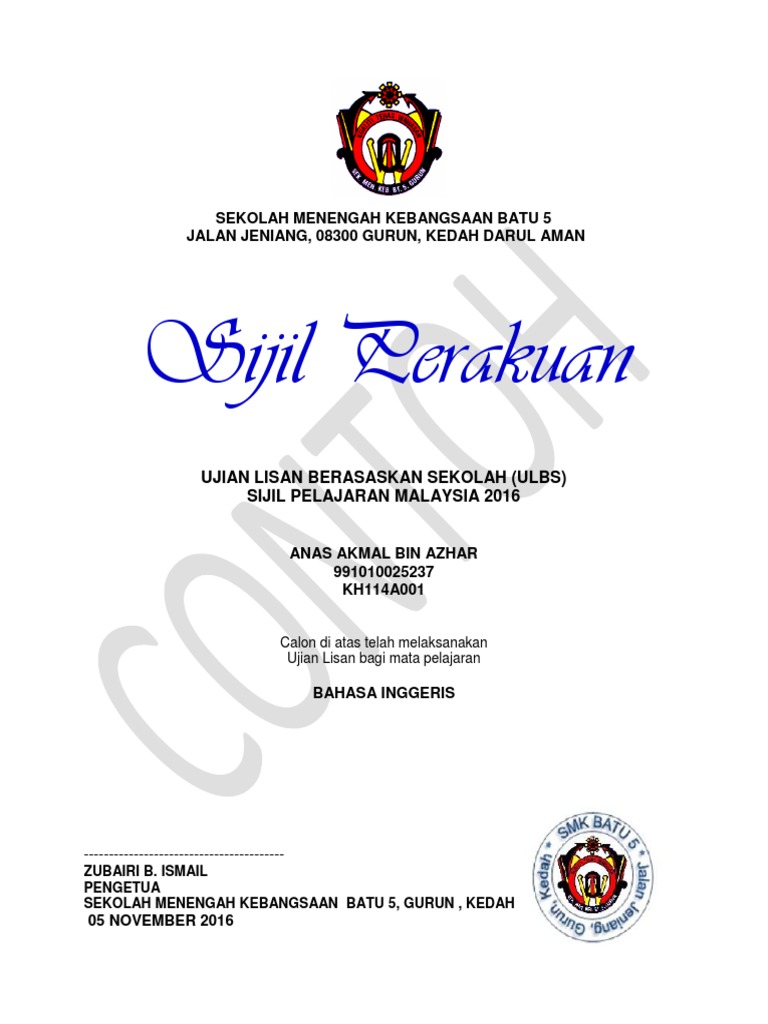 Contoh Sijil Penghargaan Dalam Bahasa Inggeris