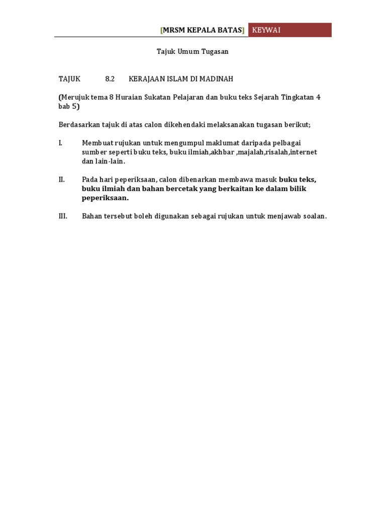 Skema Jawapan Kerajaan Islam Di Madinah Dan Contoh Soalan