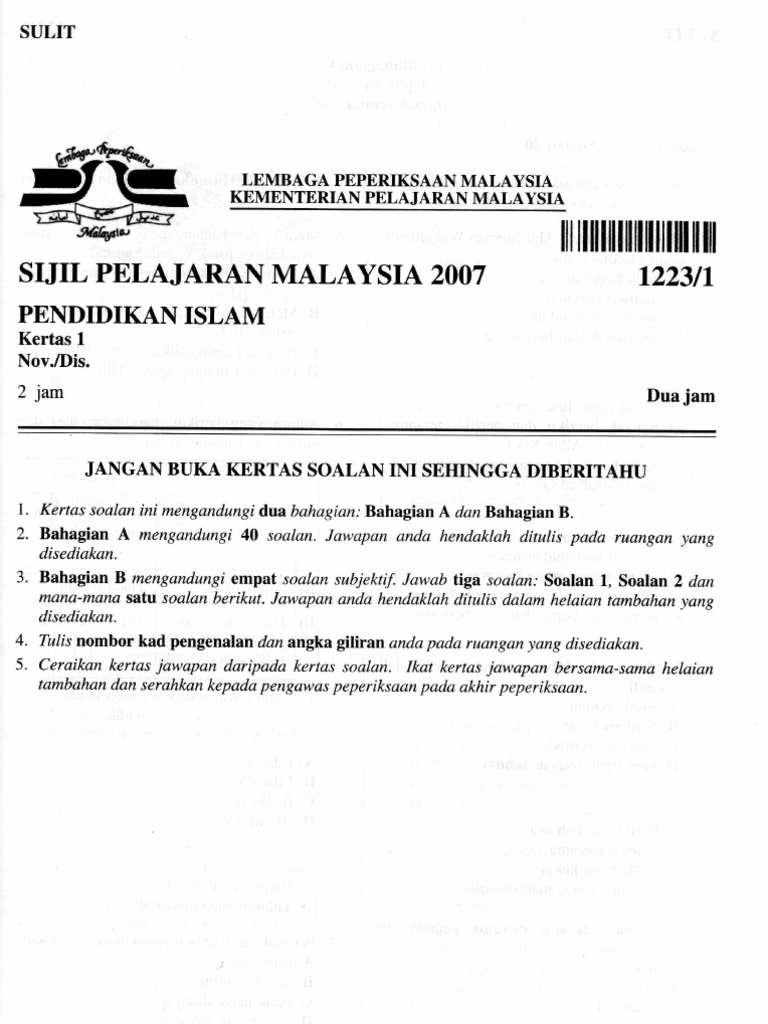 Contoh Soalan Spm Pendidikan Islam Kertas 1 Malacca U