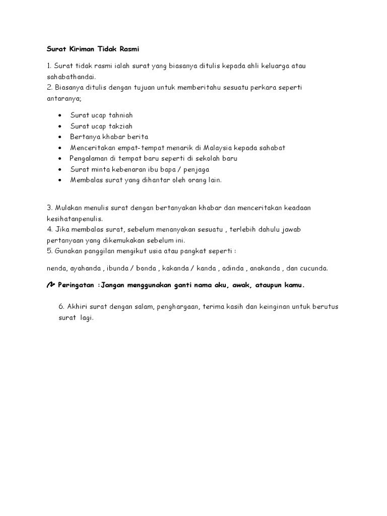 Contoh Karangan Surat Kiriman Tidak Rasmi Tingkatan 2