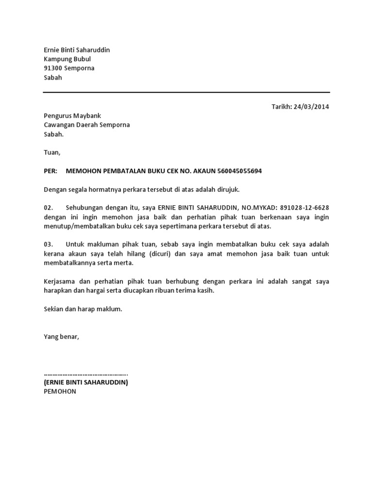 Cara Pembatalan Polisi Insurans Dan Contoh Surat Pembatalan Insurans