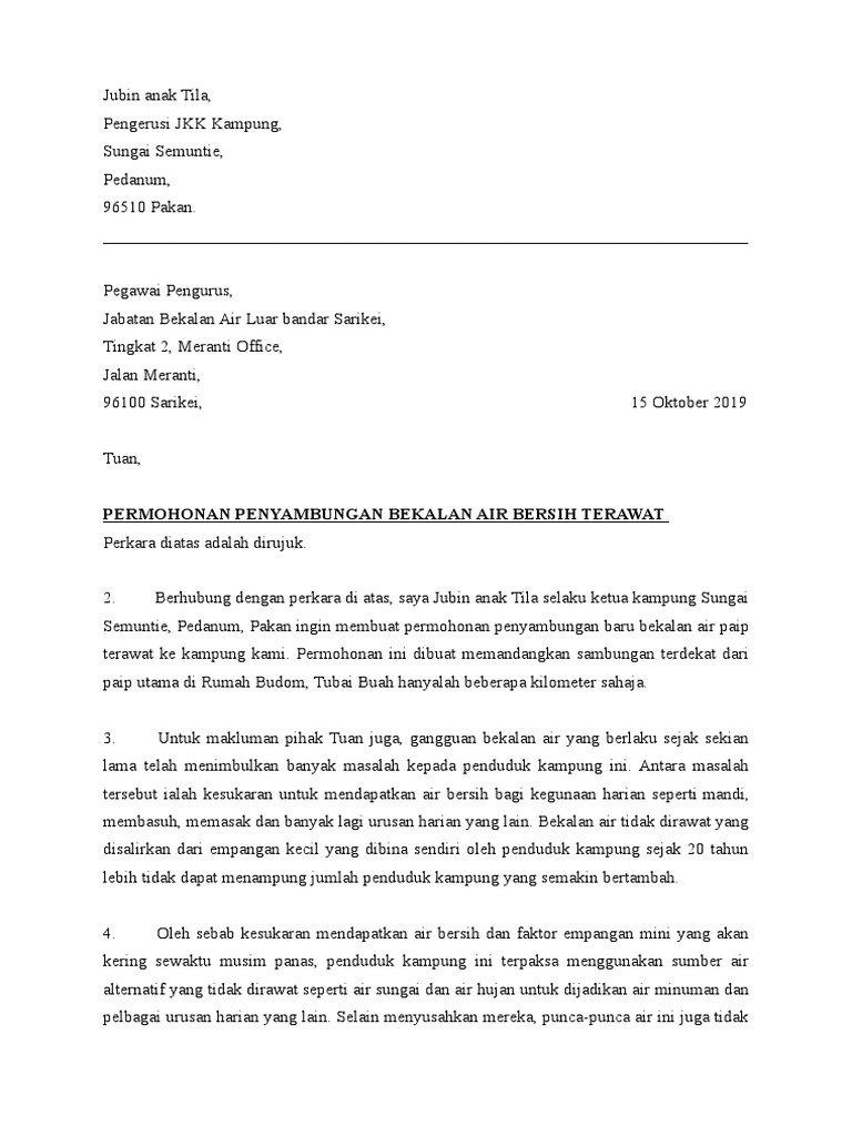 Surat Rasmi Permohonan Bekalan Air Viral Blog P