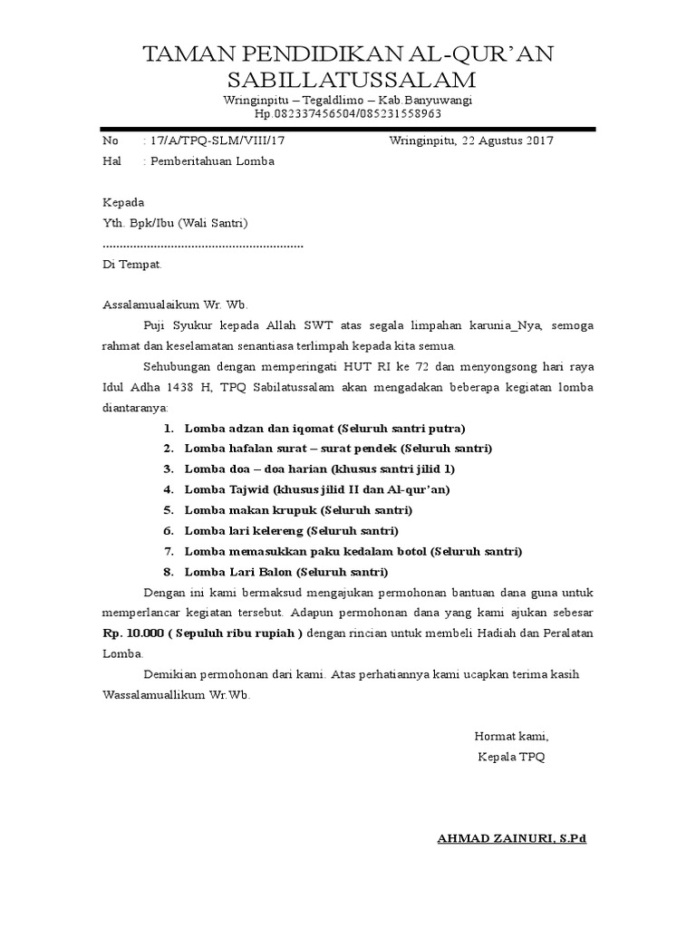 Surat Permohonan Dana Doc Tpq