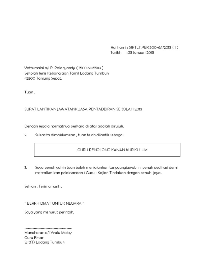Surat Lantikan Gpk Pentadbiran Sekolah