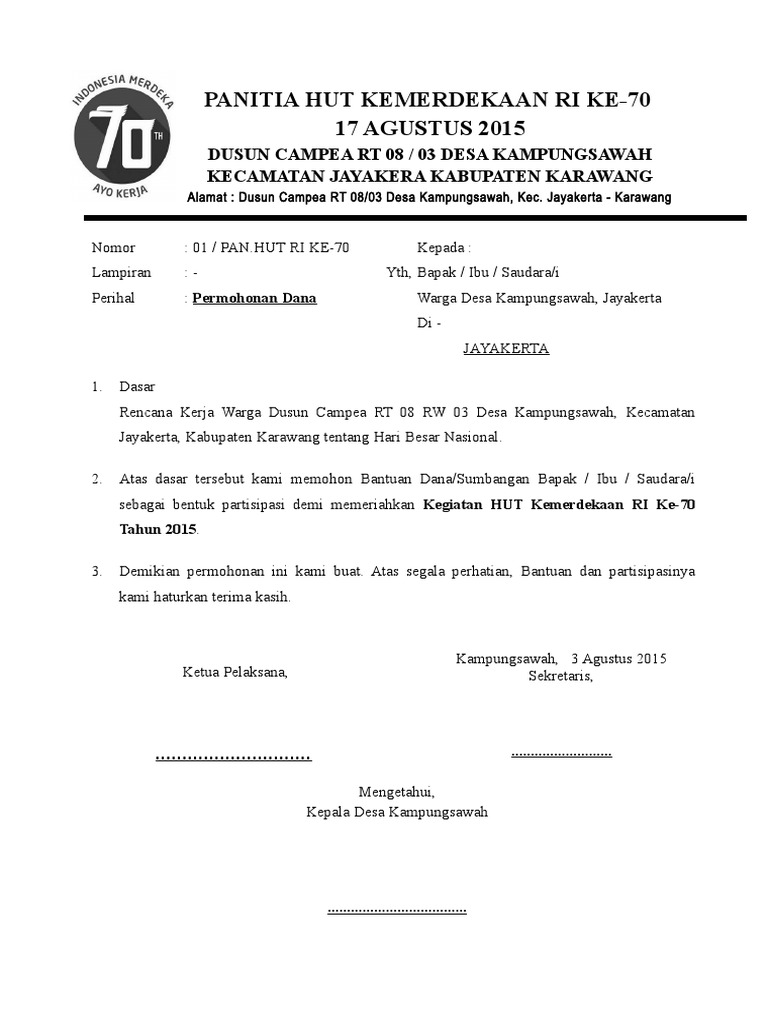 Contoh Surat Dan Proposal Permohonan Bantuan Dana Hut Ri Serbabisnis