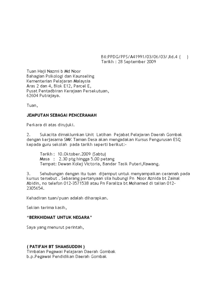 Surat Rasmi Jemputan Penceramah Surat Rasmi L
