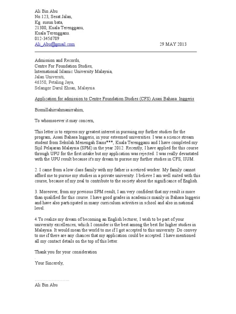 Contoh Surat Rayuan Masuk Kolej Viral Blog H