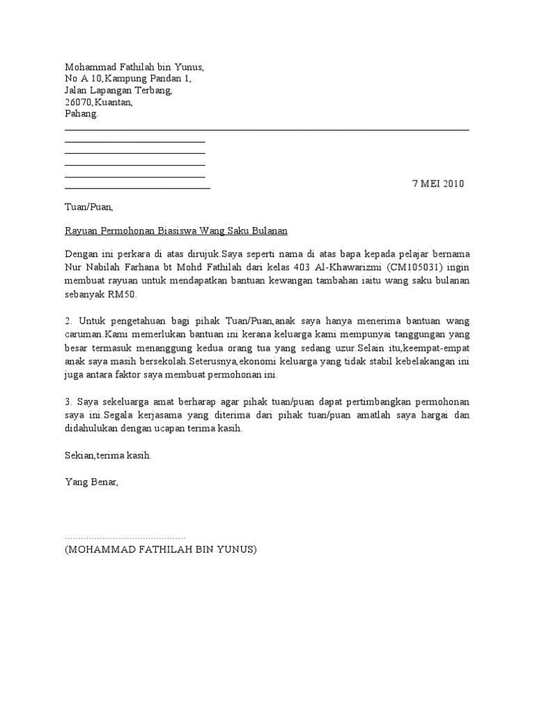 Contoh Surat Rayuan Biasiswa Jpa Mara Selangor U