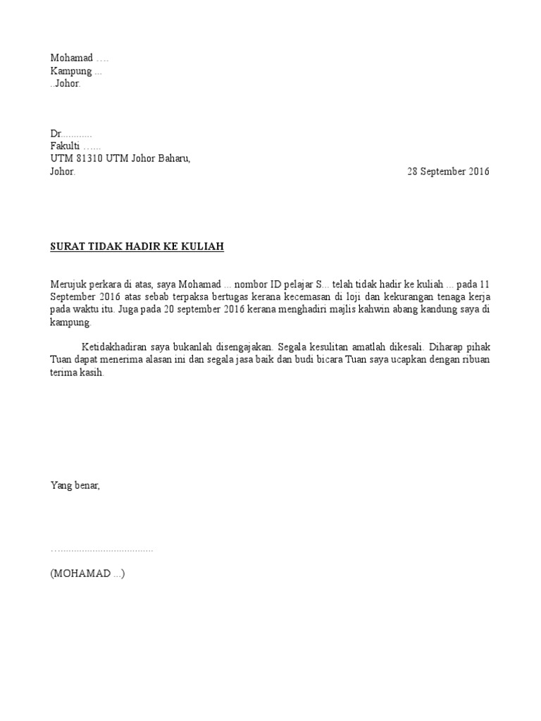 Surat Ketidakhadiran Ke Kuliah Mwl15kyz654j