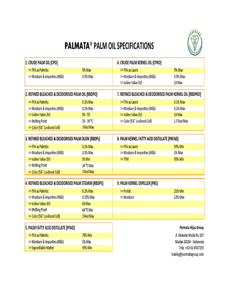 Palm Oil Commercial Specification And Quality Oil Palm Knowledge Base