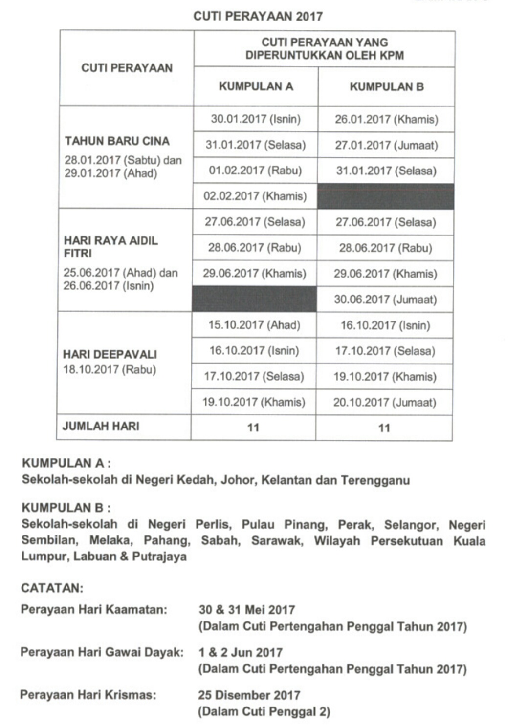 Cuti Perayaan 2017 Rasmi Kpm Pendidik2u