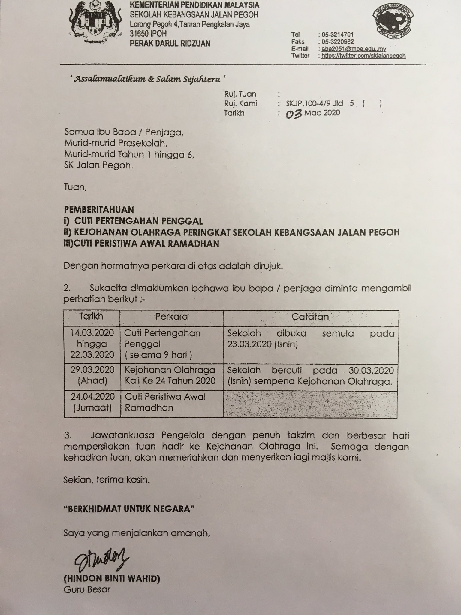 Sk Jalan Pegoh On Twitter Pemberitahuan Cuti Pertengahan Penggal Kejohanan Olahraga Cuti Peristiwa Awal Ramadhan Skjpexcellent