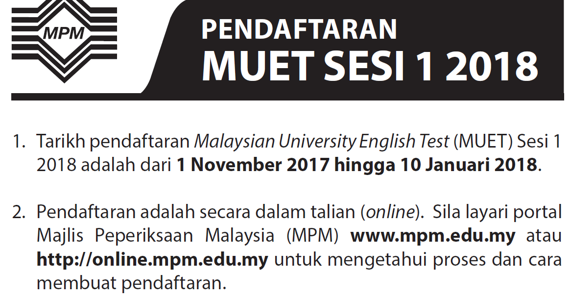 Daftar Muet Sesi Mac 2018 Online My Panduan