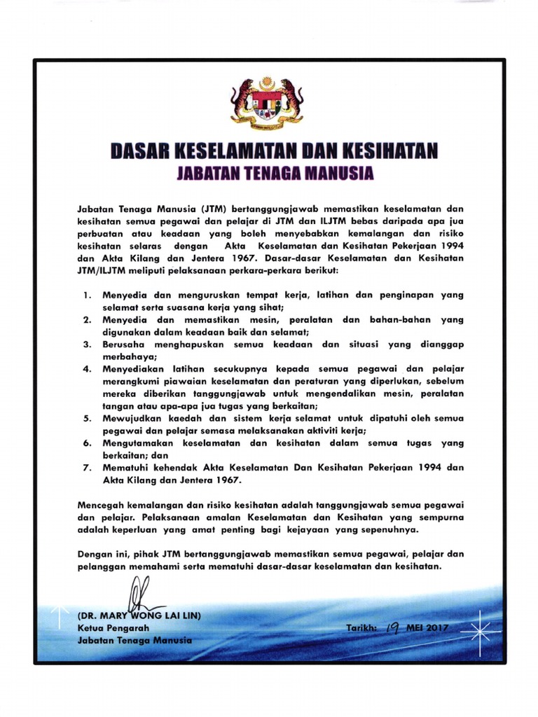 Polisi Keselamatan Dan Kesihatan Pekerjaan Hospital Changkat Melintang