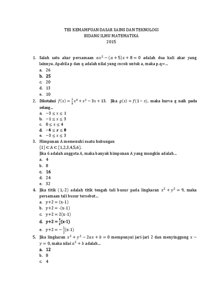 Dalam Berkas Soal Ini Tes Kemampuan Dasar Sains Dan Teknologi Tkd Saintek Terdiri Atas 60 Soal 2