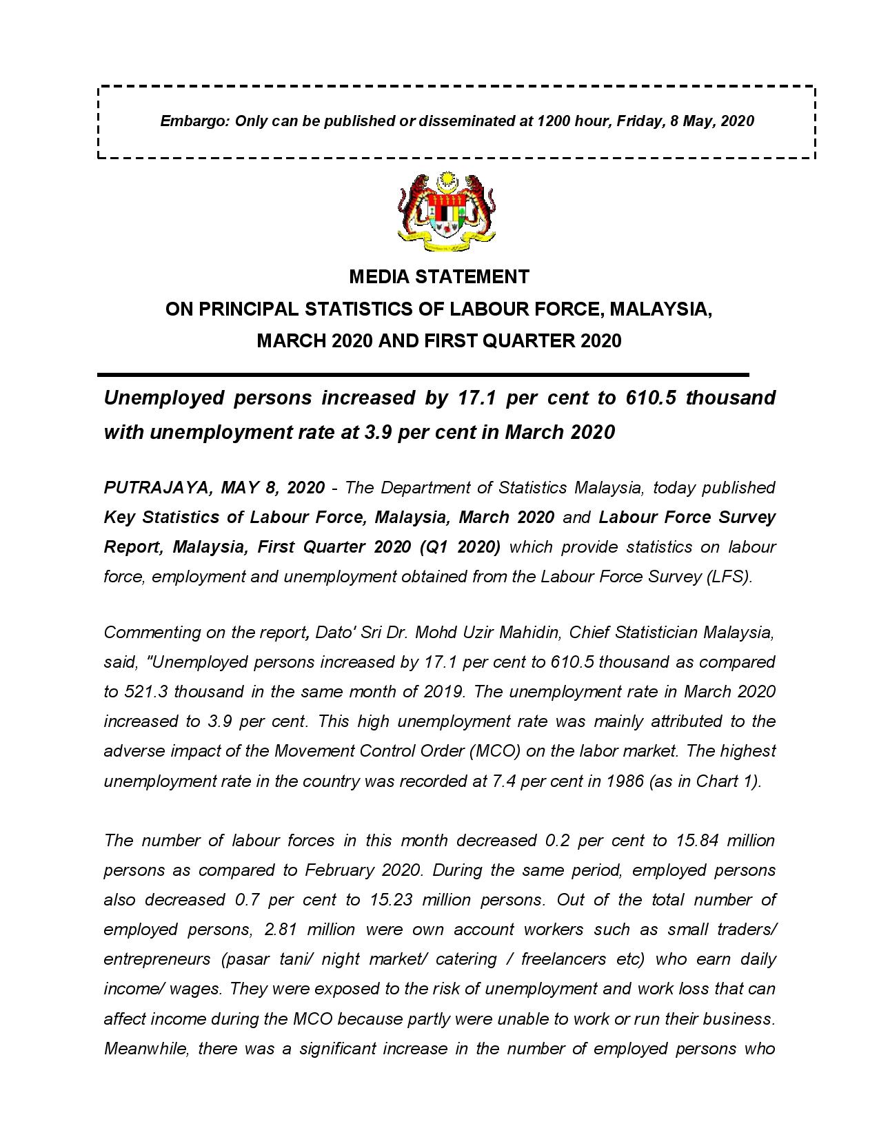 Dr Uzir On Twitter Dosm Will Be Releasing Its Labour Force Survey Report Malaysia For 2019 On 29th April 2020 At 12 00 Pm Dosm Lfs