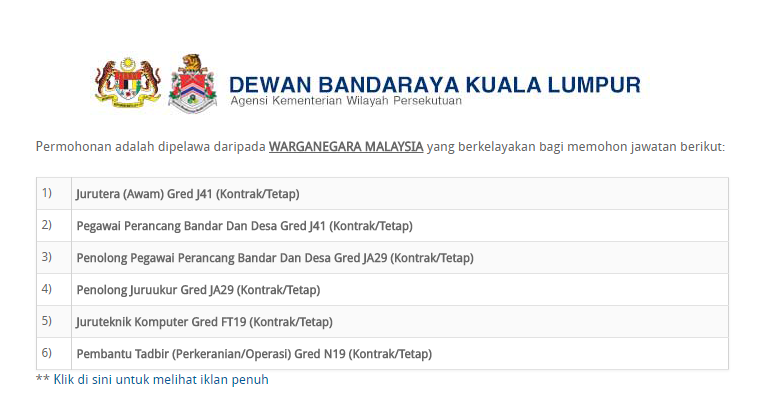 Kekosongan Jawatan Di Dewan Bandaraya Kuala Lumpur Dbkl Pelbagai Jawatan Semakjawatan Com Jawatan Kosong Terkini