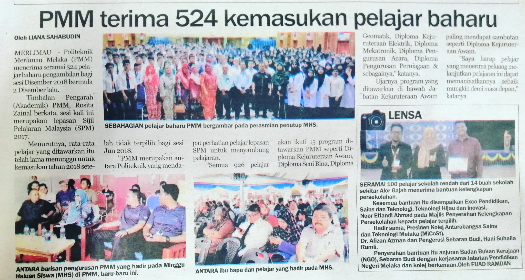 Politeknik Merlimau على تويتر Pmm Terima 524 Kemasukan Pelajar Baharu Melakakini Edisi 14 20 Dis 2018 Pmmnews X4x Melakaberwibawa