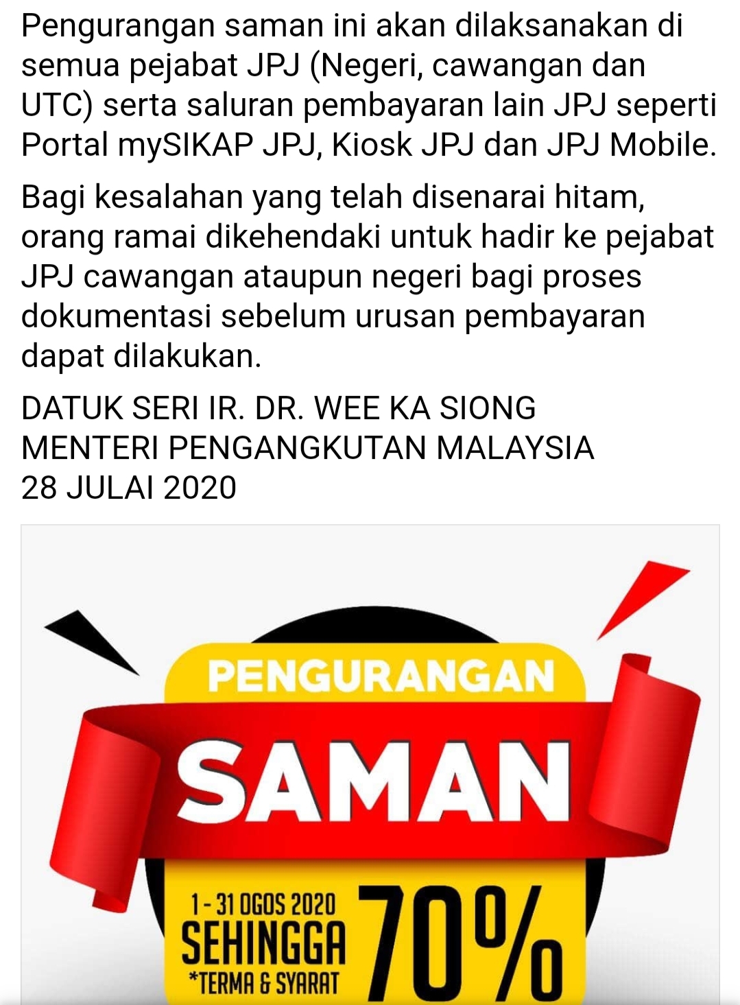 Jpj Beri Diskaun Saman 70 Sempena Bulan Kemerdekaan 2020