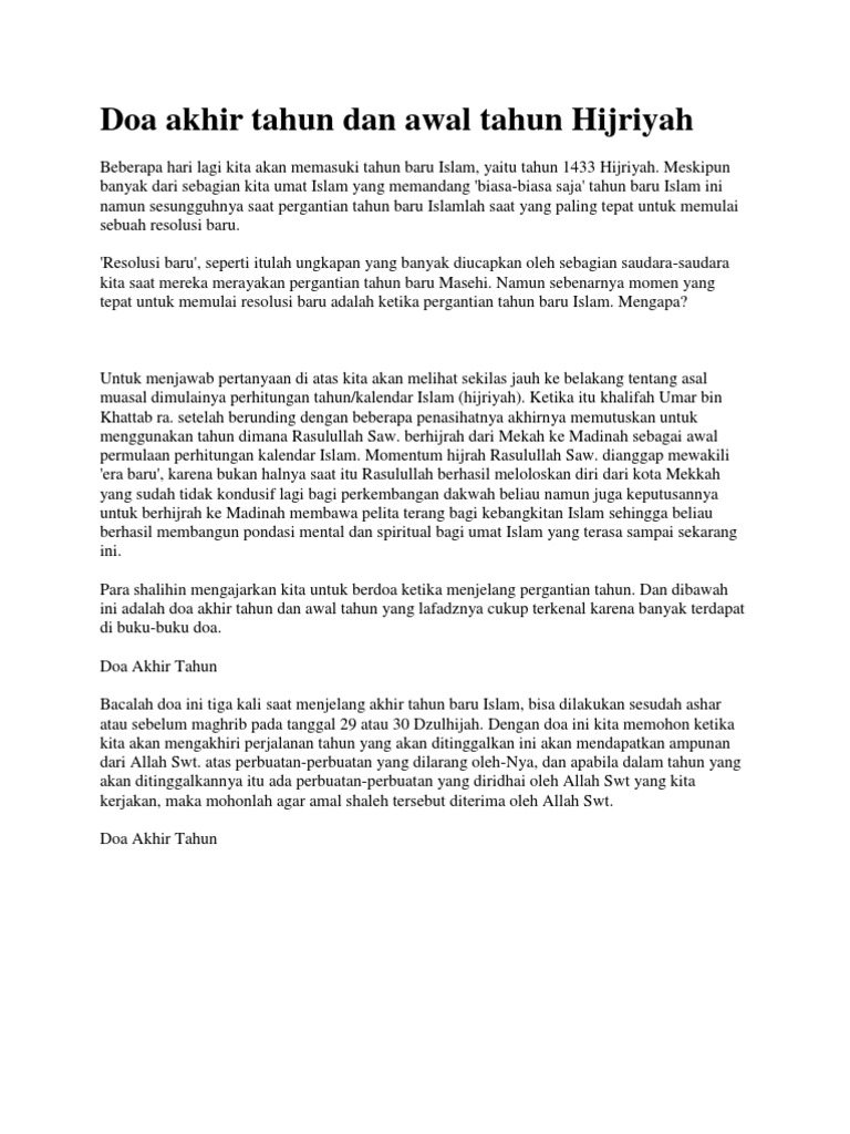 Salah Faham Tentang Bacaan Doa Awal Tahun Dan Akhir Tahun Hijrah Ucapan Tahun Baru Kutipan Agama Doa