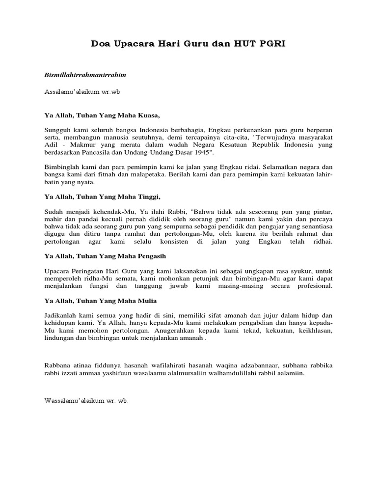 Doa Upacara Hari Guru Dan Hut Pgri Docx