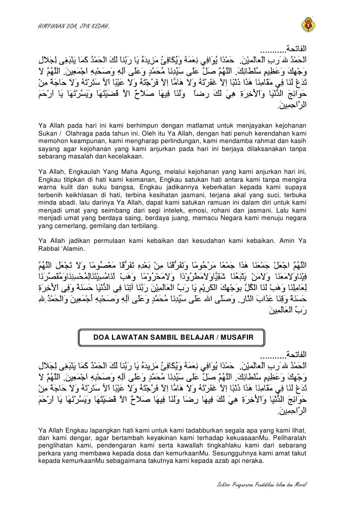ال ـح م د لله الذ ي ب ن ع م ت ه ت ت م الص ال ـح ات و الص لا ة و الس لا م ع ل ى ر س و ل ن ا الأم ي ن و ع ل ى ء أل ه و أص ح ابه أج ـم ع ي ن. Kami memohon kehadrat mu semoga engkau jadikan majlis ini sebagai salah satu wadah untuk kami bersatu padu bekerjasama dan bantu membantu di kalangan kami dan juga demi membangunkan dan memartabatkan majlis guru kaunseling kebangsaan kluang di. 0 0 upvotes mark this document as useful 0 0 downvotes mark this document as not useful embed. Doa sempena majlis solat hajat ب س م الله الر ح م ن الر ح ي م ال ـح م د لله الذ ي ب ن ع م ت ه ت ت م الص ال ـح ات و الص لا ة و الس لا م ع ل ى ر س و ل ن ا الأم ي ن و ع ل ى ء أل ه و أص ح ابه أج ـم ع ي ن.