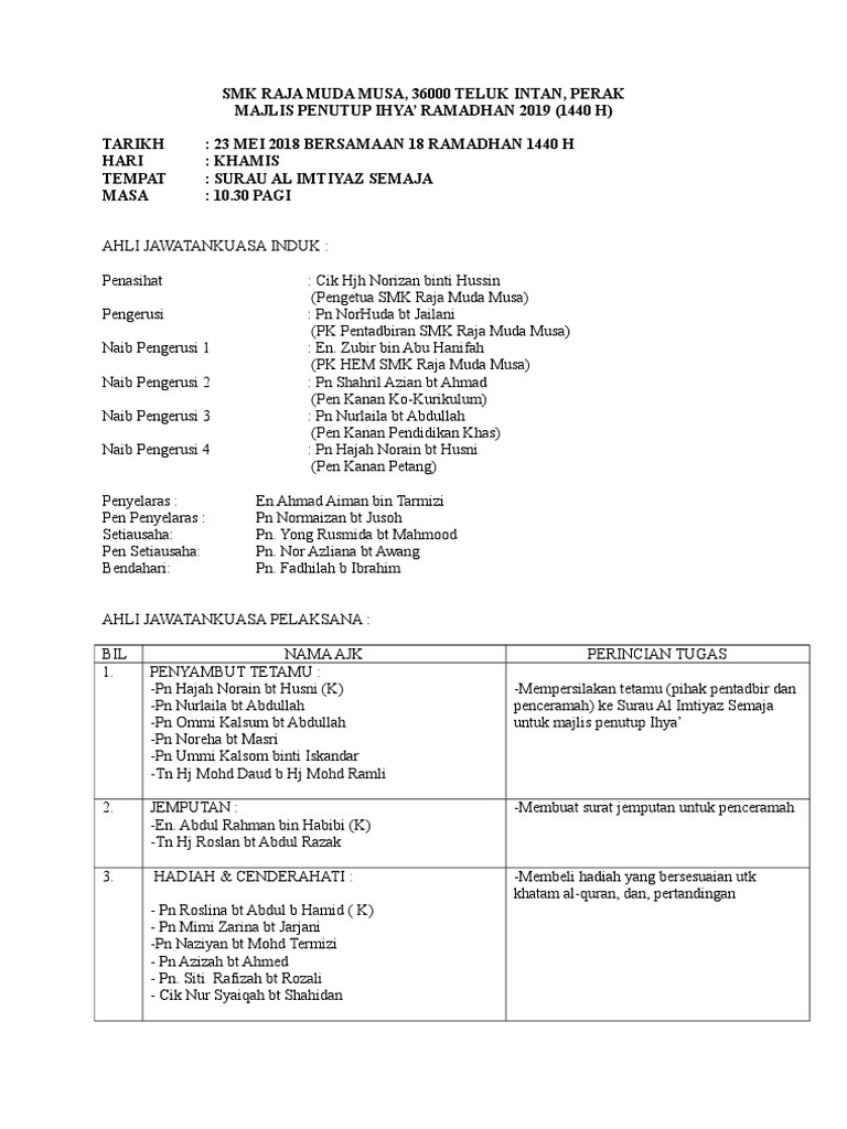 Kertas Kerja Penutup Ihya Ramadhan 2019 Pages 1 5 Text Version Anyflip