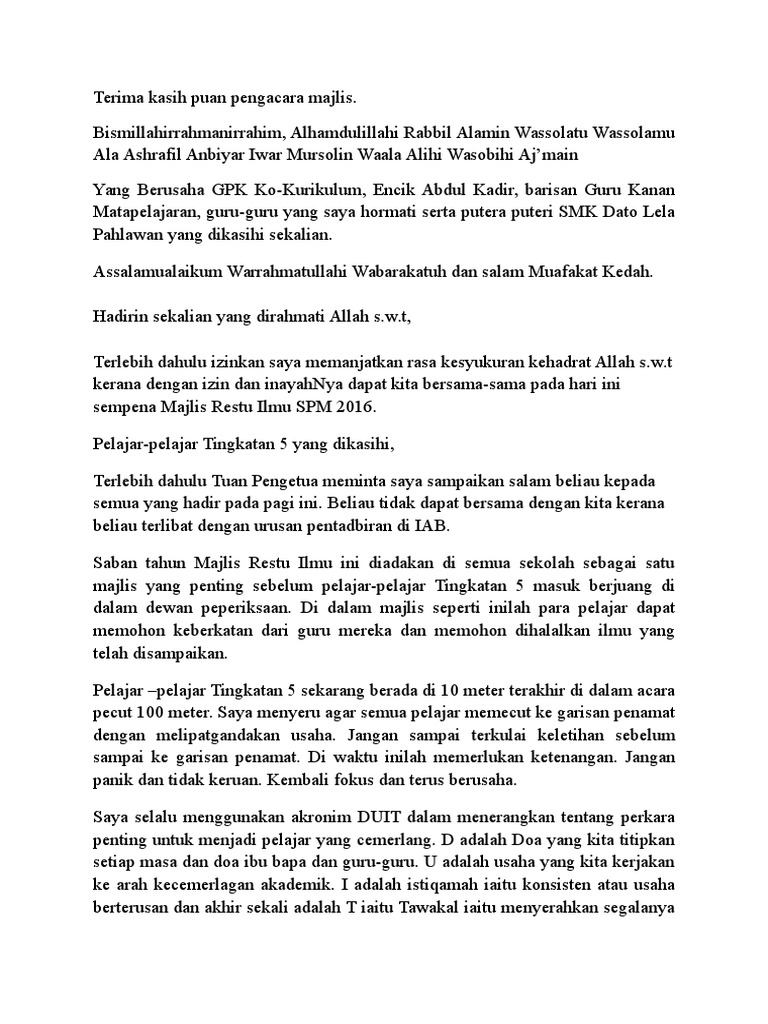Teks Juruacara Majlis Restu Ilmu Spm Dan Stpm Doc Document