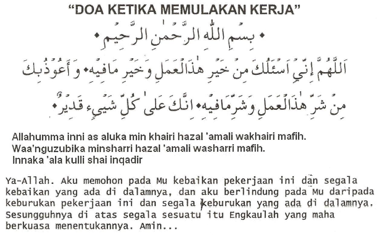 Doa Sebelum Memulakan Kerja Dalam Bahasa Melayu