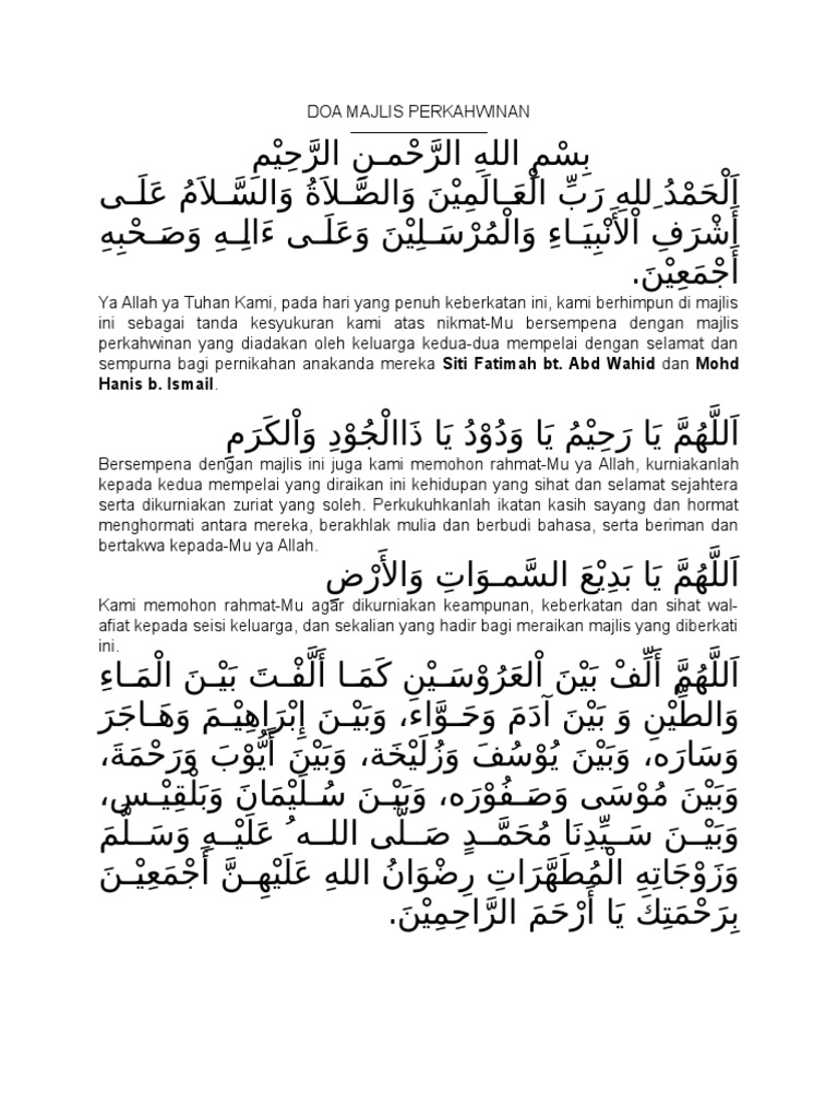 Doa Majlis Perkahwinan Pdf