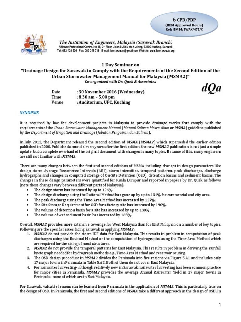 7 Drainage Design For Sarawak To Comply With The Requirements Of The Second Edition Of Msma2 30 11 Water And Politics Hydrology