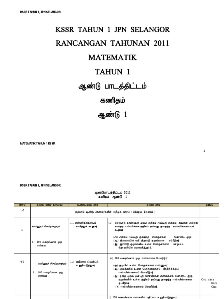 Rancangan Pengajaran Tahunan Kssr Matematik Tahun 1