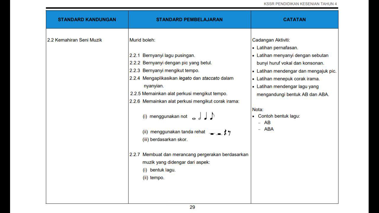 Dskp Kssr Semakan 2017 Pendidikan Muzik Tahun 4 Gurubesar My