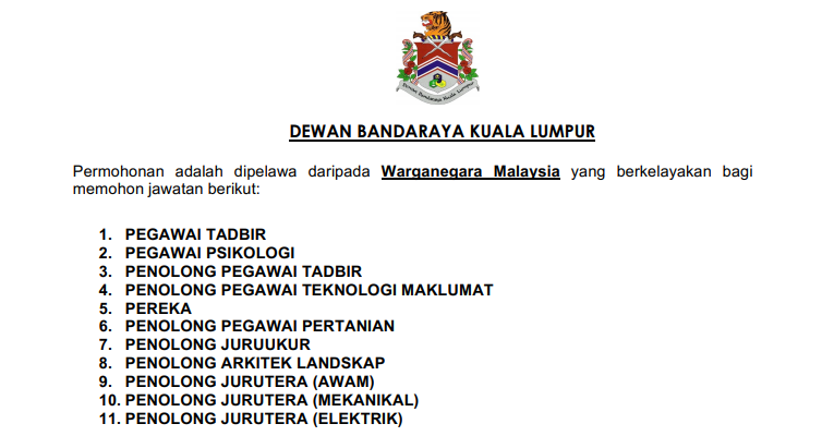 Kekosongan Dbkl Jawatan Kosong Dewan Bandaraya Kuala Lumpur