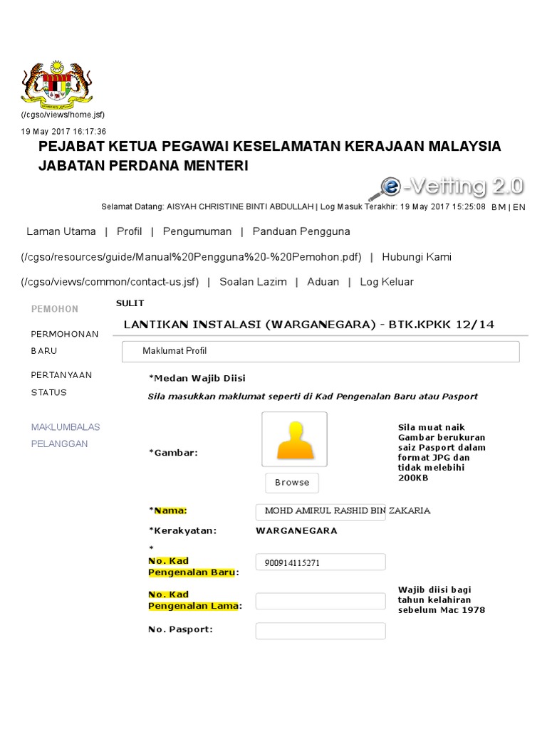Manual Pengguna Sistem E Vetting Pengguna Pemohon Pdf Manual Pengguna Sistem E Vetting 2 0 Modul Pdf Document