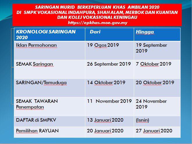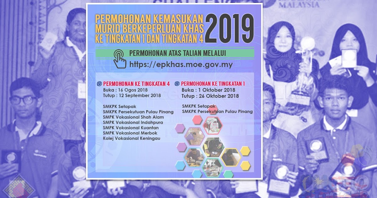 Kementerian Pendidikan Malaysia Permohonan Murid Berkeperluan Khas Ambilan 2020 Tingkatan 1 Dan 4 Dibuka Bermula 19 Ogos Hingga 19 September 2019 Permohonan Atas Talian Boleh Dibuat Melalui Pautan Https Epkhas Moe Gov My Facebook