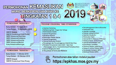 Permohonan Kemasukan Murid Berkeperluan Khas 2019 Ke Tingkatan 1 Dan Tingkatan 4