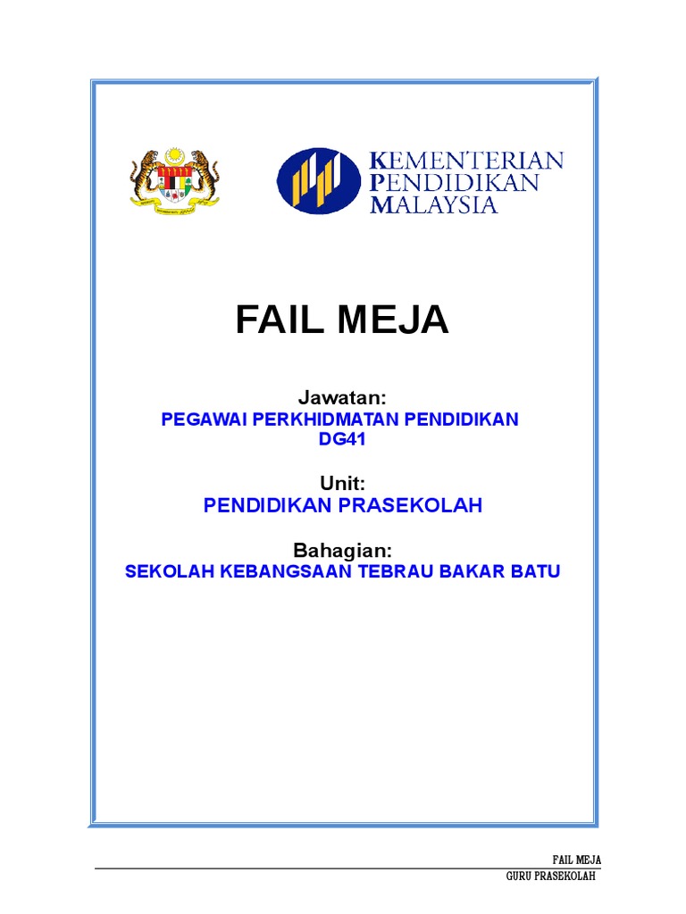 Fail Meja Guru Prasekolah Terbaru Edit Ikut Susunan