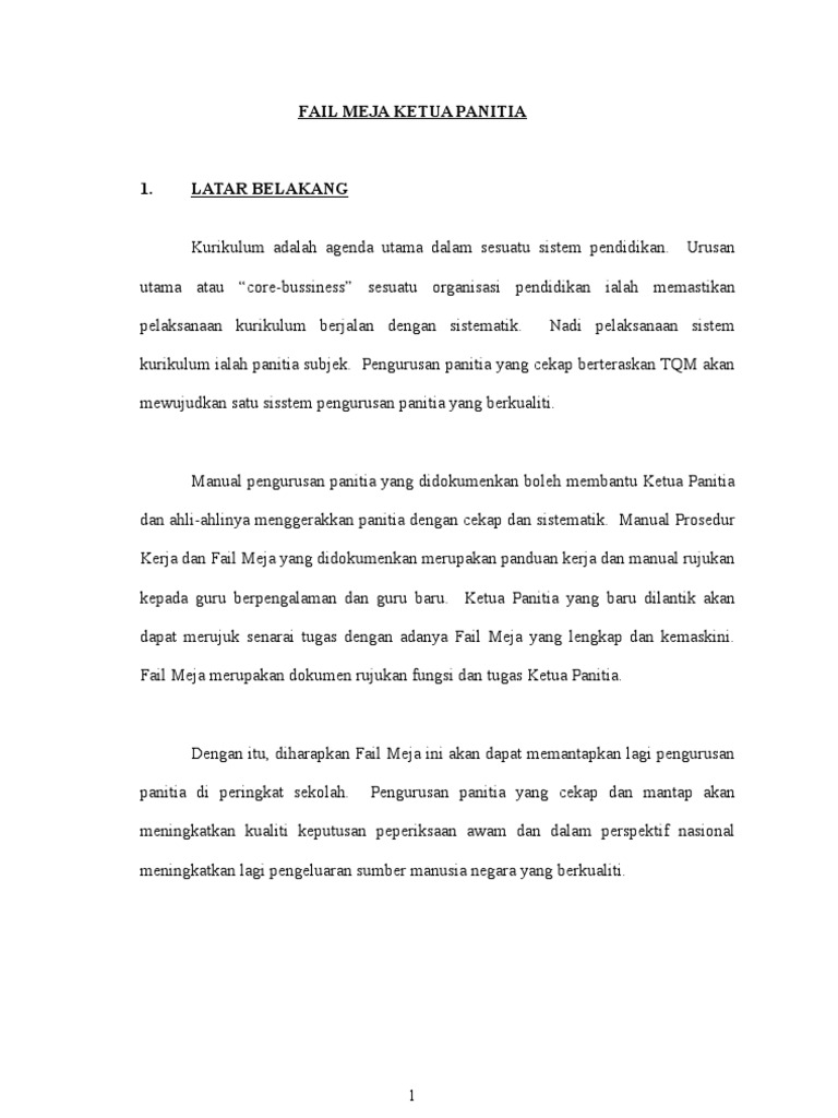 Contoh Fail Meja Panitia Pdf Document