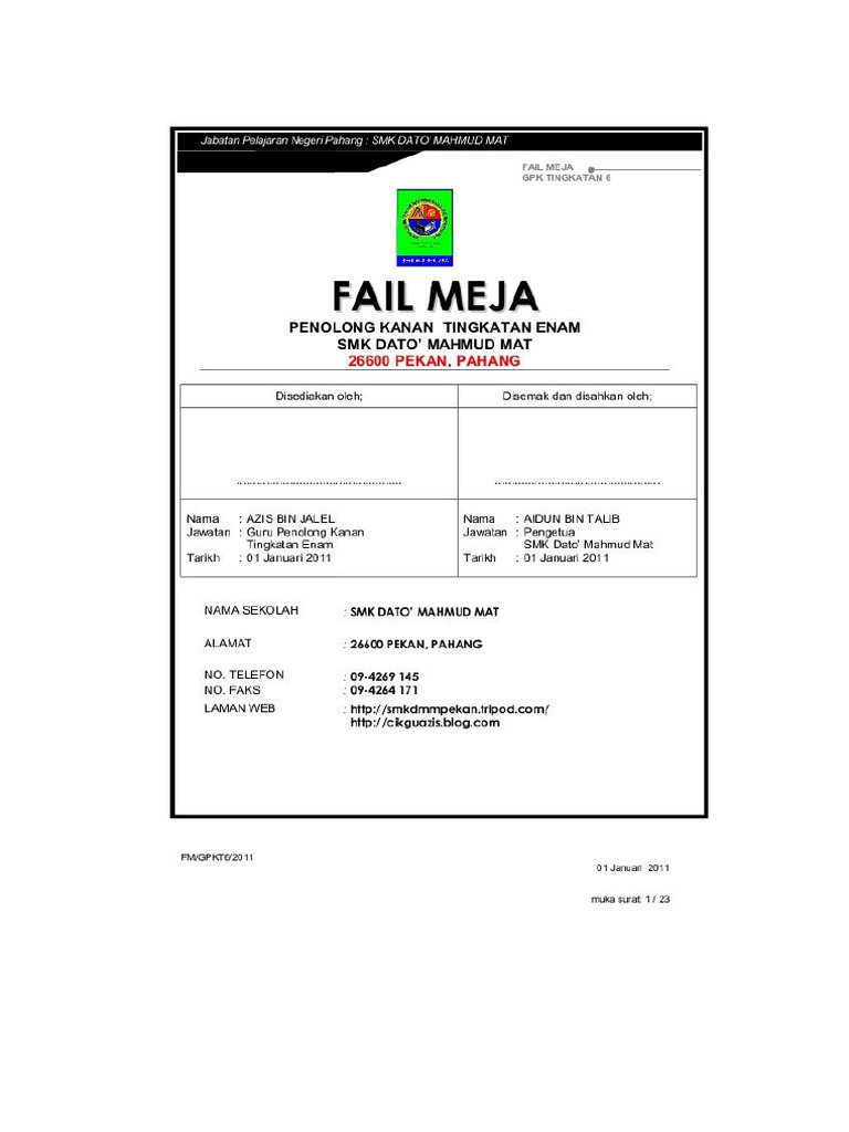 Fail Meja Guru Penolong Kanan Pentadbiran Pdf Document