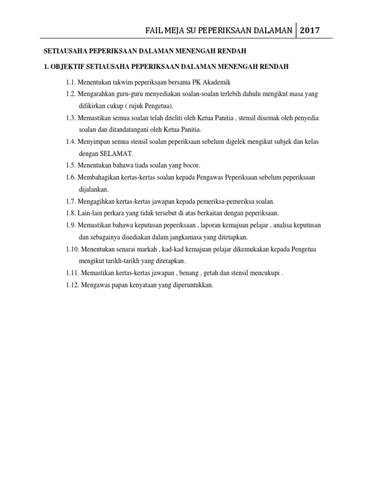 Fail Meja Su Peperiksaan Dalaman Documents