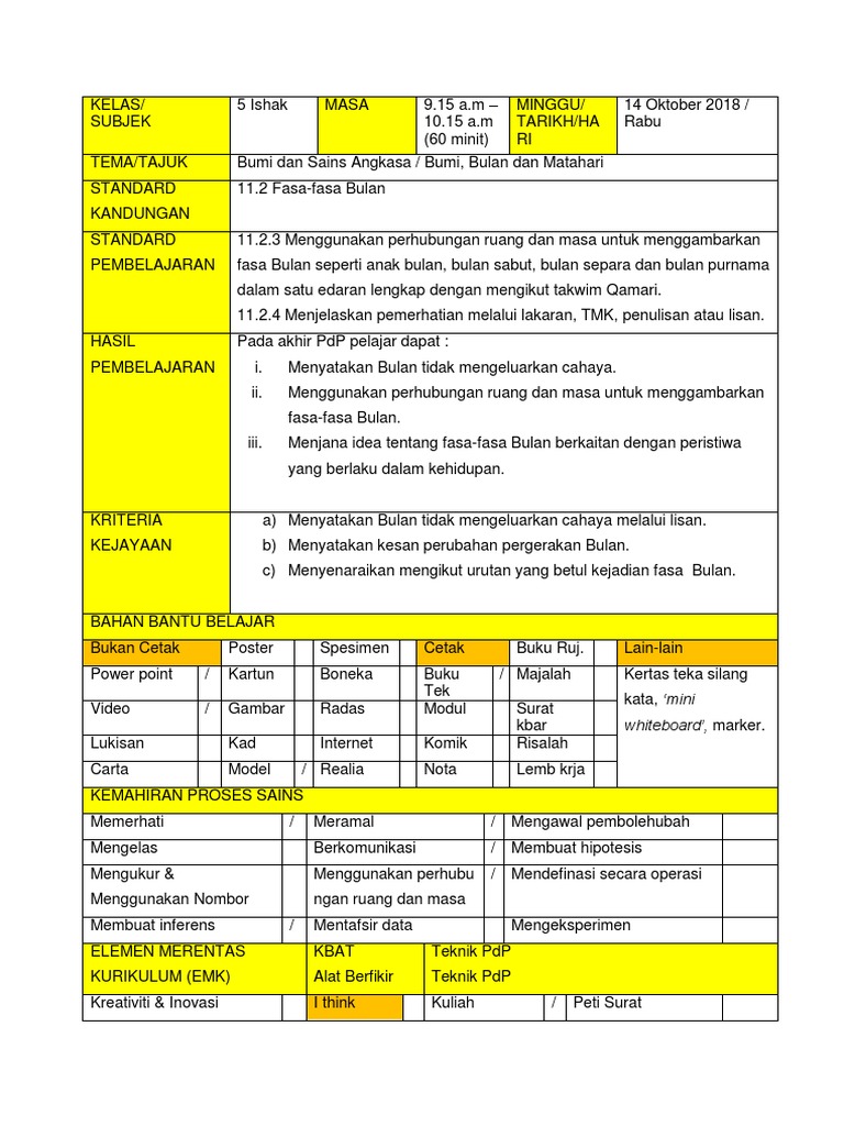 Rancangan Pengajaran Harian Fasa Bulan