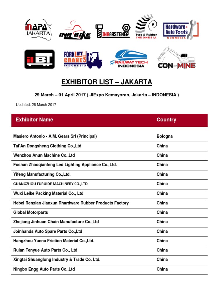 Exhibitor List Inapa 2017