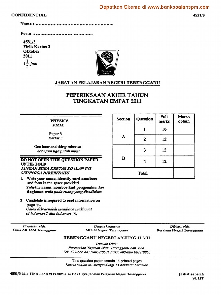 Download Rpt Fizik Tingkatan 4 Menarik 4 Jsi Fizik Kertas 3 Pdf Skoloh