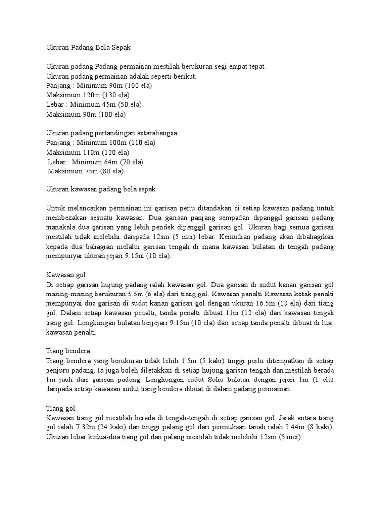 Ukuran Padang Bola Sepak Lengkap Dengan Penerangannya Tarahap