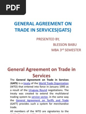 General Agreement On Trade In Services Gats General Agreement On Trade In Services World Trade Organization