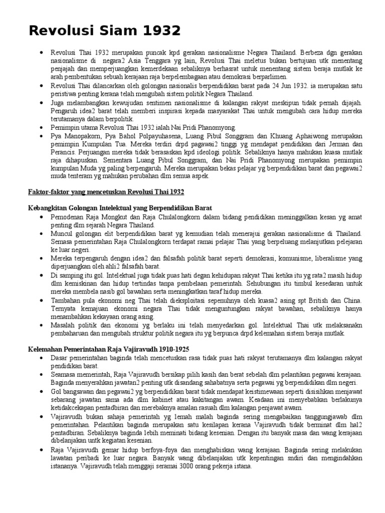 Nasionalisme di thailand nai pridi panomyong. Thailand telah menggunakan peluang bekerjasama dengan jepun untuk mendapatkan sama hak kekuasaan ke atas wilayah yang pernah dikuasainya seperti di indochina perlis kedah kelantan dan terengganu. Kegelisahan rakyat terhadap penguasaan politik oleh kerabat diraja. Perkembangan nasionalisme di asia tenggara.
